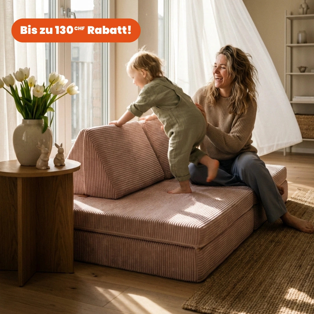 Ein Sofa, das mehr kann: spielen, bauen, toben, entspannen – alles in einem. Deine Kinder werden es lieben!