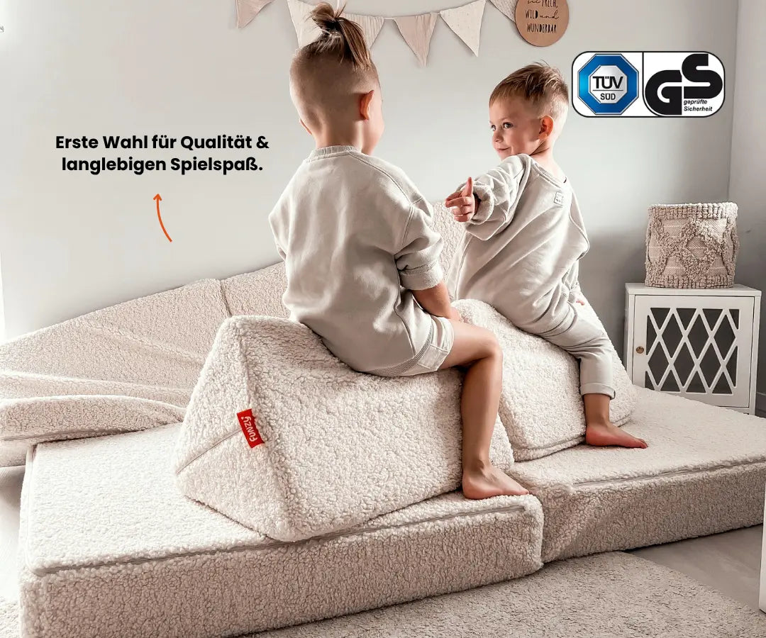 🧡 Das Schöne daran: Aufgrund ihrer variablen Nutzbarkeit und Modularität, (wie z.B. als Sofa, Gästebett, Leseinsel, Kletterspielzeug, Höhle), braucht man keine großen Räume. Oft reicht eine bewusst gestaltete Zone, die beliebig mit weiterem Zubehör oder weiteren Kinderspielmöbeln erweitert werden kann, wenn mehr Platz dafür gegeben ist (wie z.B. mit dem Spieltisch, Hüpfpolster, Sitzsäcke, Donut, Kletterbogen von Funzy etc.).