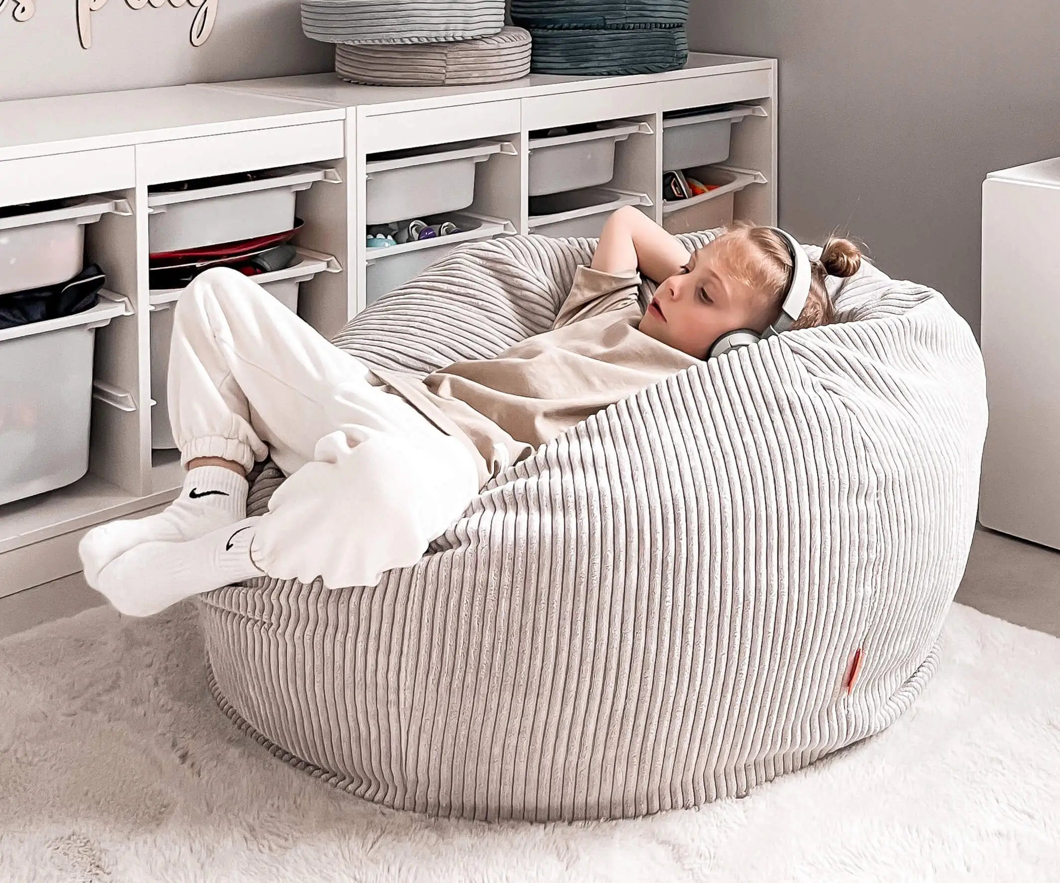 Der Funzy Kindersitzsack bietet deinem Kind einen Platz zum Entspannen, der sich sofort an seine Körperform anpasst.